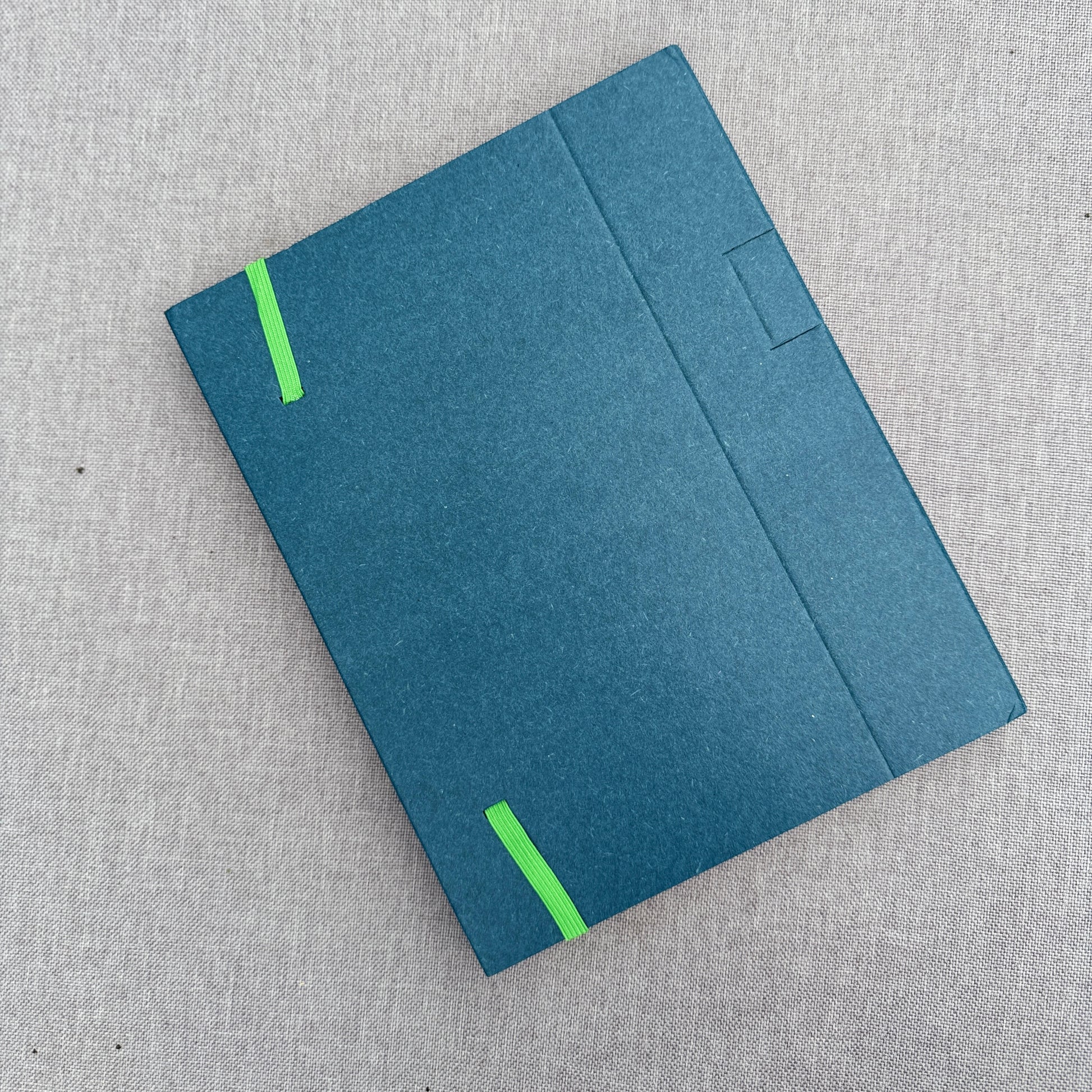 Details: DIN-A5, Schweizer Broschur, OceanBlue, Gummiband, Lesezeichenband, 128 Seiten